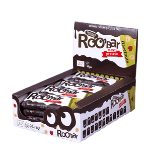 Zutaten: Kokossirup*, Schokolade* (Kakaomasse*, Kokosblütenzucker*, Kokosnusscreme*, Kakaobutter*, Emulgator: Sonnenblumenlecithin*) (16%), Datteln*, geröstete HAZELNÜSSE* (12%), Kakaobutter*, Reisprotein* (9%), Erbsenprotein* (9%), HAZELNUSSMUS* (8%), Kakaopulver*.